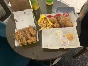 夜ご飯は、ホテルの近くで夜遅くまで開いていたNENE CHICKENというケンタッキーのようなお店でチキンをテイクアウトしました。骨がのどに引っ掛かりかけて焦りましたが、おいしかったです。