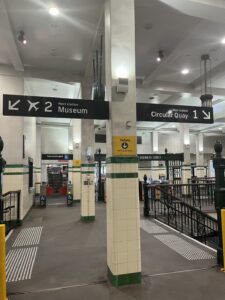空港から宿泊地のHilton Sydneyまでは、地下鉄で向かいます。クレジットカード(VISA)のタッチ決済機能を使って利用しました。
